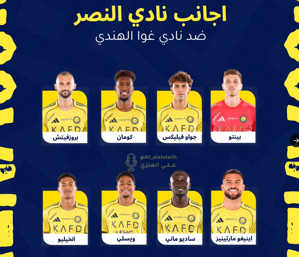 6686體育11月6日訊 據利雅得勝出局跟隊記者alabdallh報道,8位外援進入勝出局與阿羅亞冠西賽等名單,C果馬坎馬坎等。