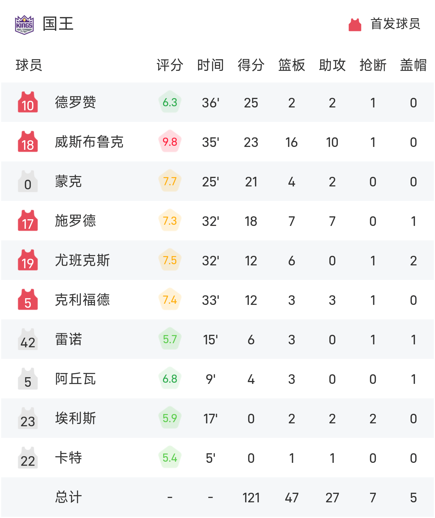 NBA戰報:威少三雙&關鍵截球,國王121-116擊敗勇士