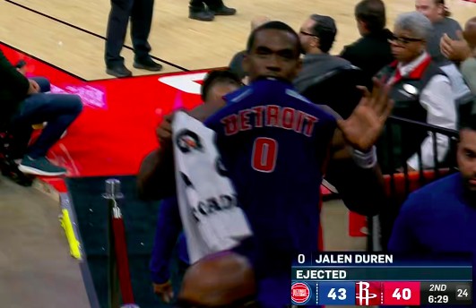 杜倫揮肘打到阿門湯普森臉部,被吹罰二級惡意違例被驅逐