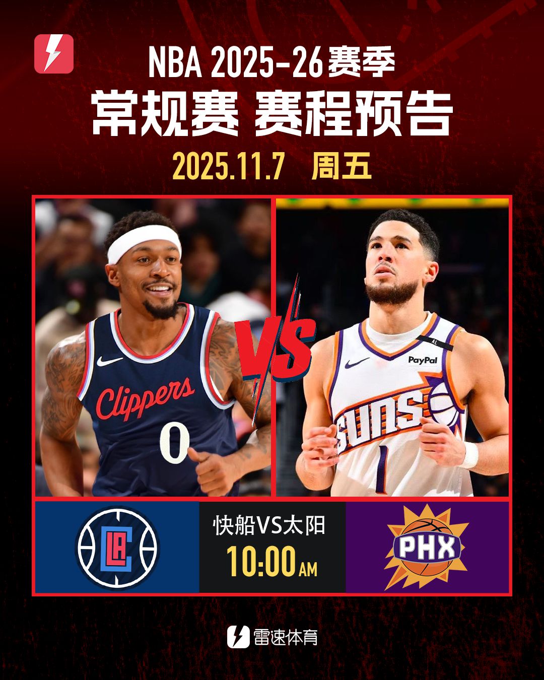6686體育11月6日訊 明日NBA常規賽僅有快艇對太陽一場競賽。