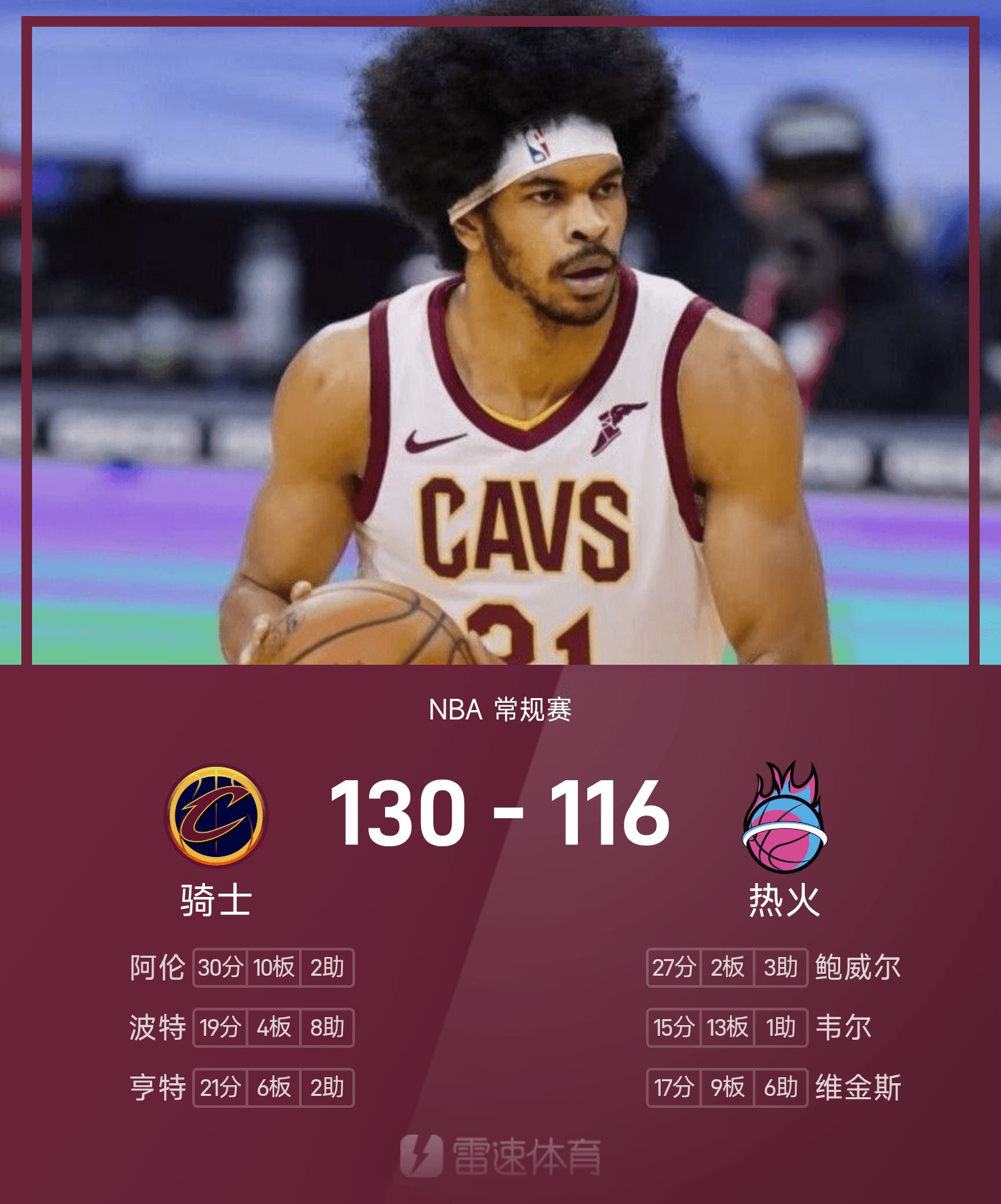 NBA戰報:阿倫30分10板,騎士130-116逆轉熱火
