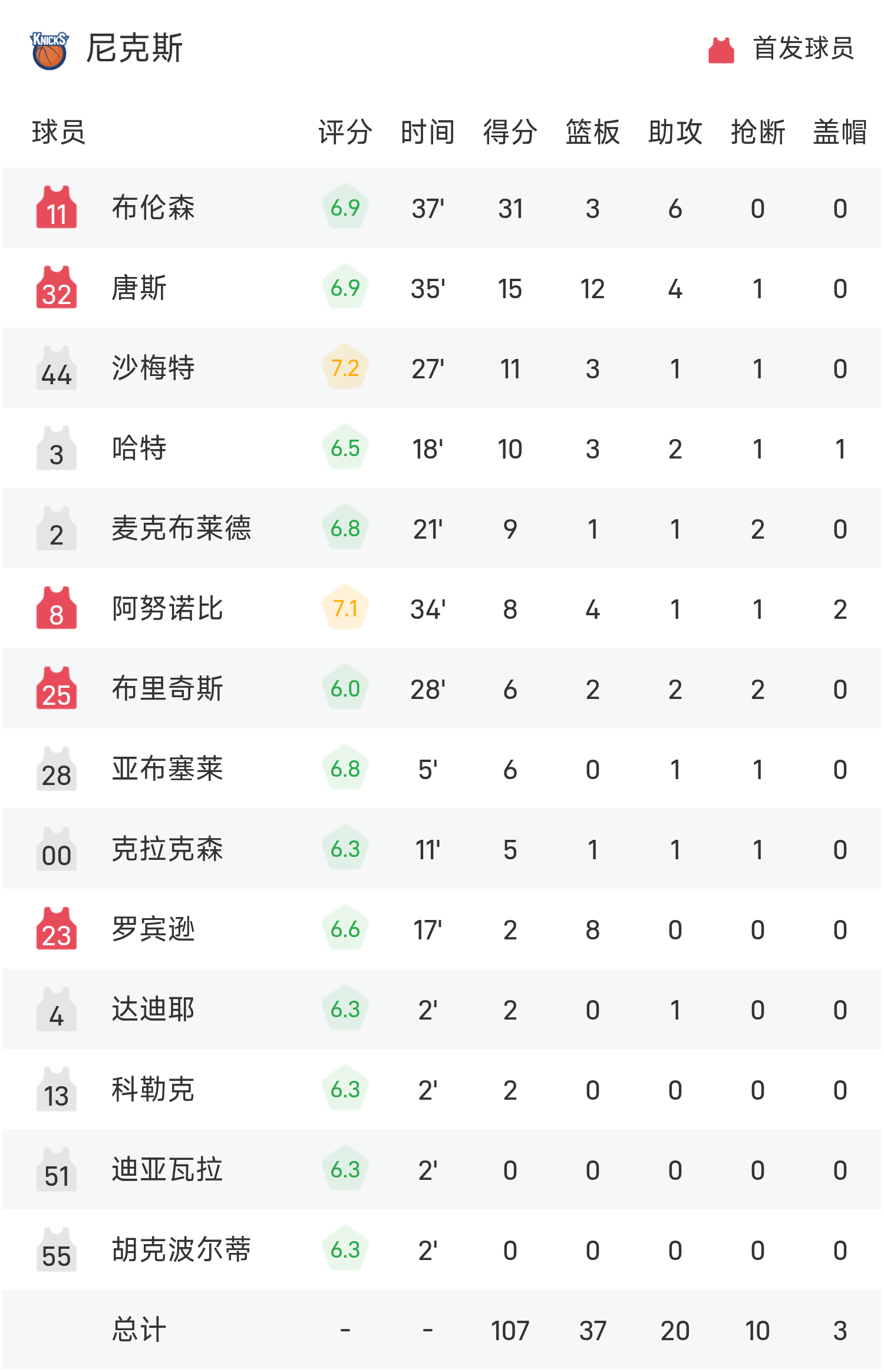 瓦格納得到28分9板4助率隊取勝,布倫森空砍全場最高的31分3板6助。