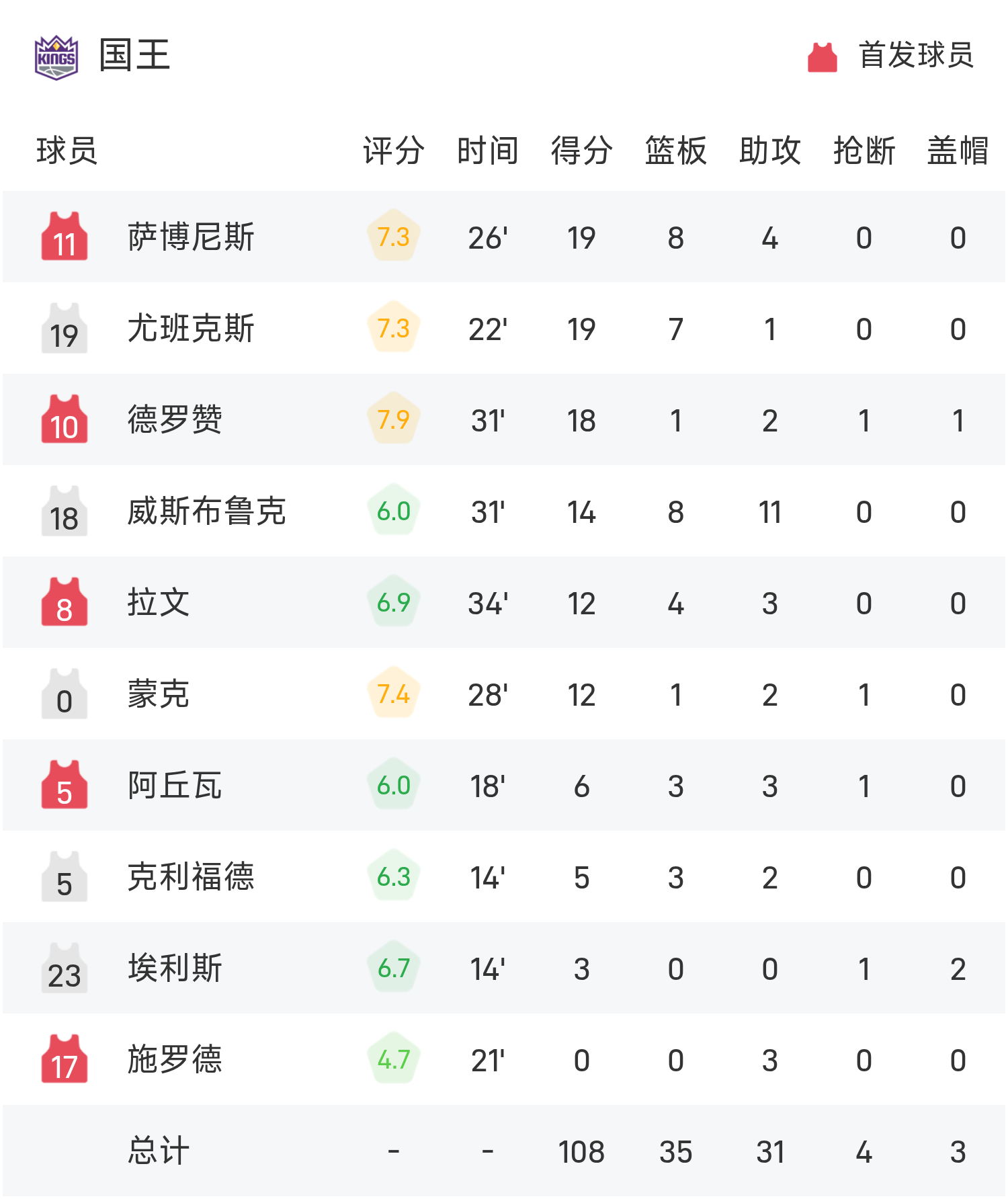 雙方全場戰罷,國王108-122不敵掘金。