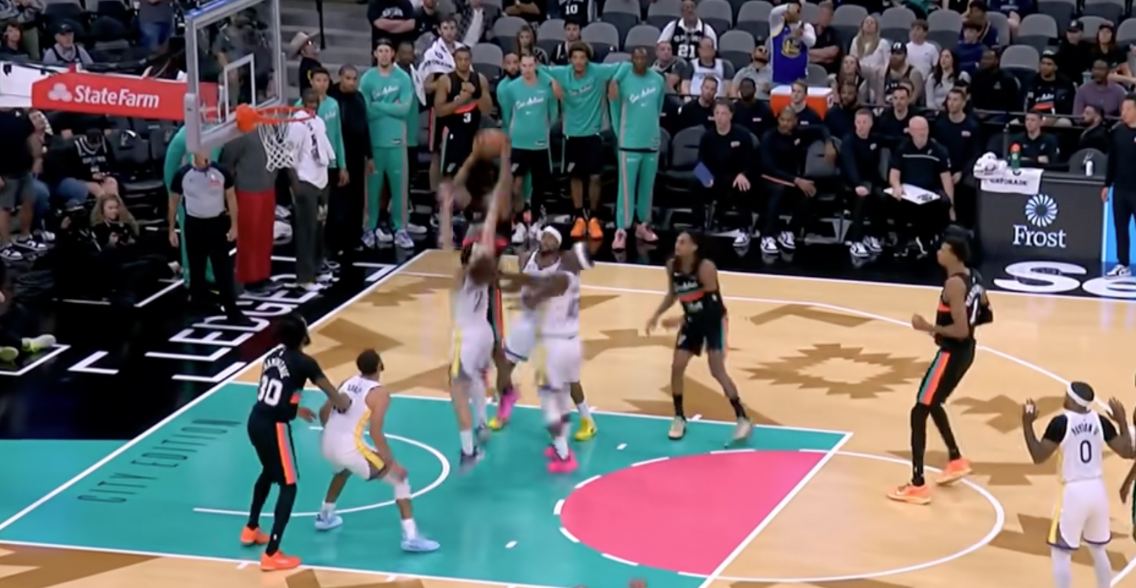 值得一提的是,競賽最後2.1秒,穆迪被戰略違例,兩罰全進將分差擴展到7分的情況下,文班亞馬並未選擇放棄競賽,而是直接迅速發球,大腳傳給前場快下的卡斯爾,後者中投得手,文班收穫了個人第10次雙助攻,就此達成了三雙助攻。