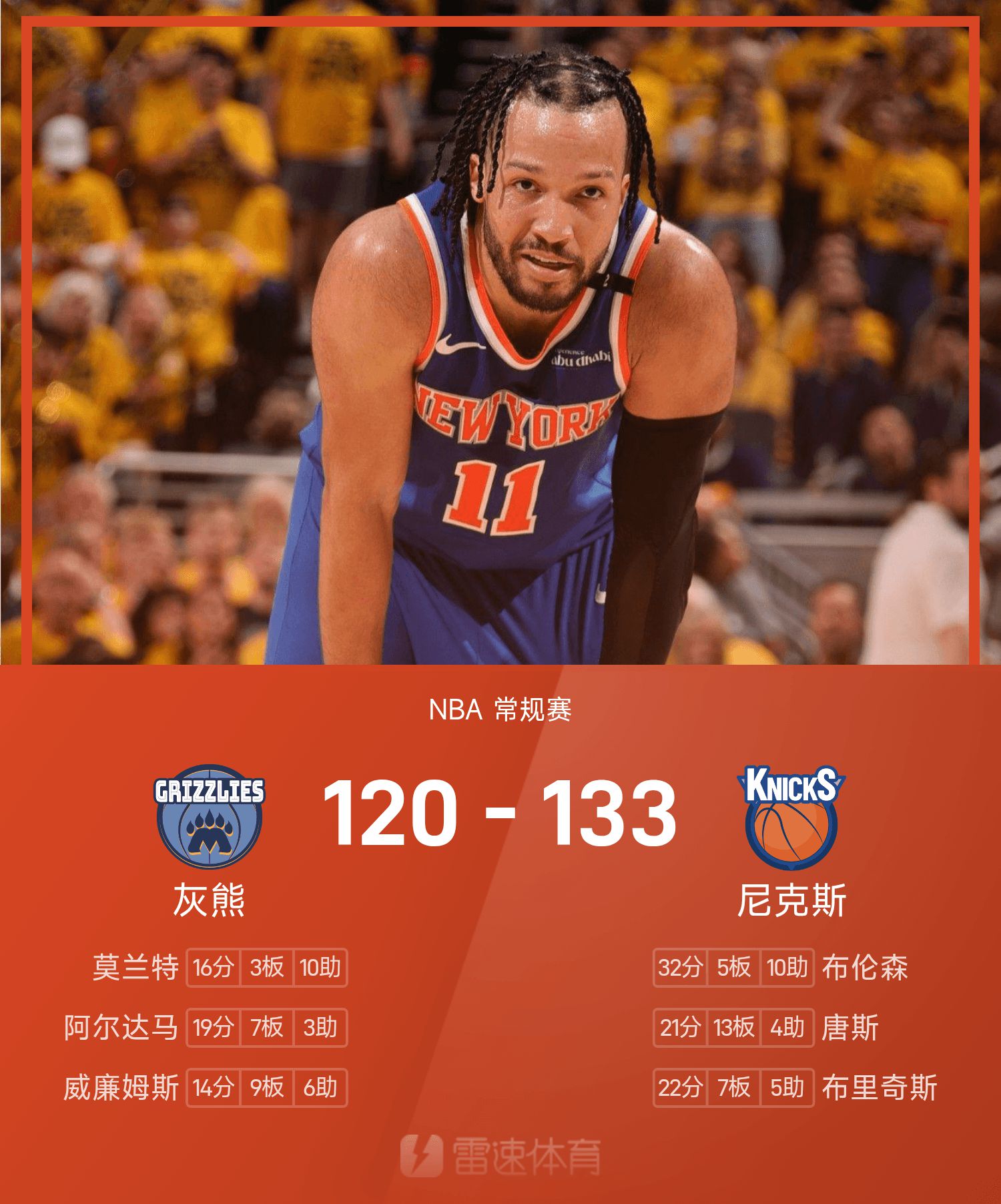 布倫森砍32分10助攻,率領領主隊領豪取7連勝。