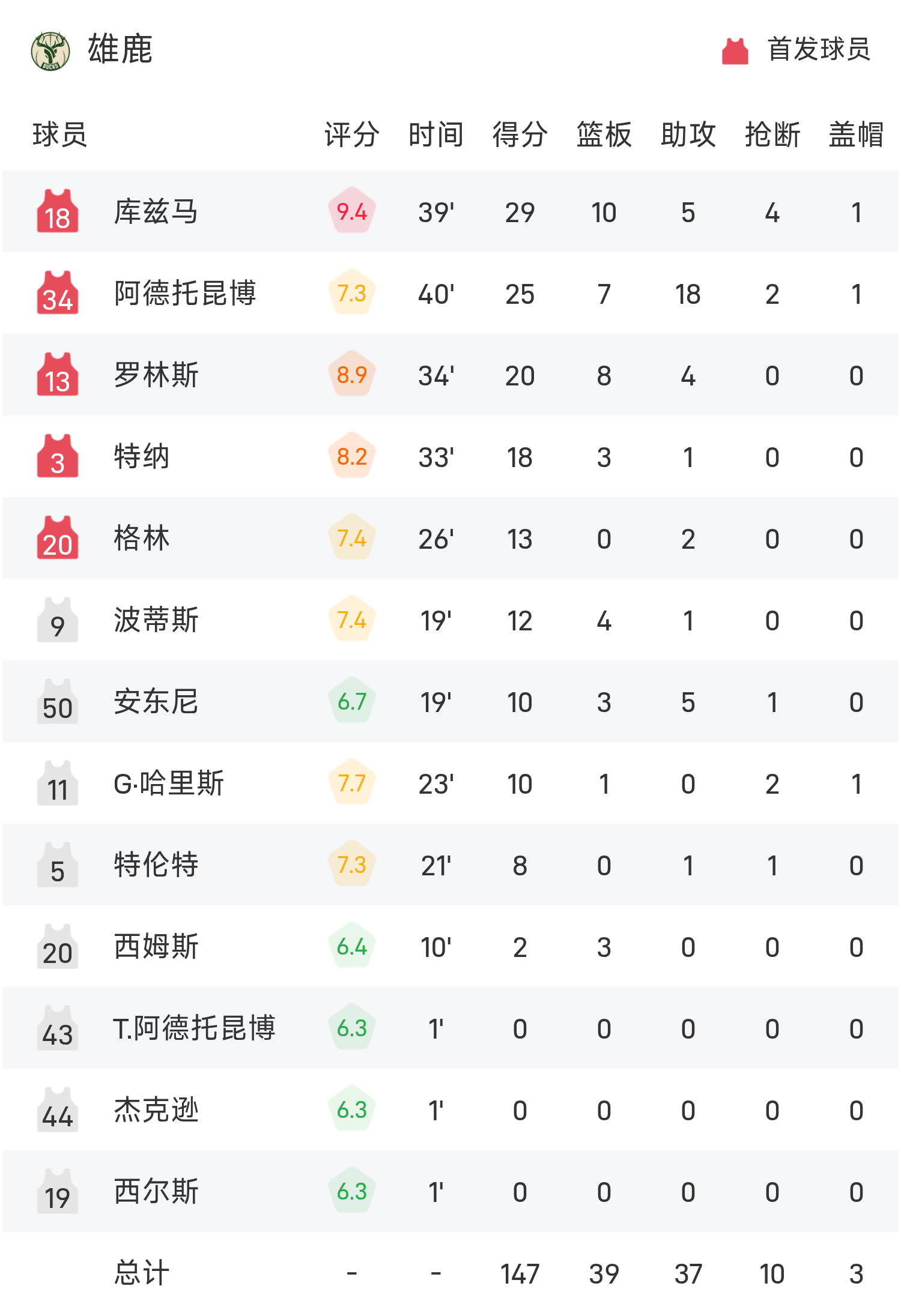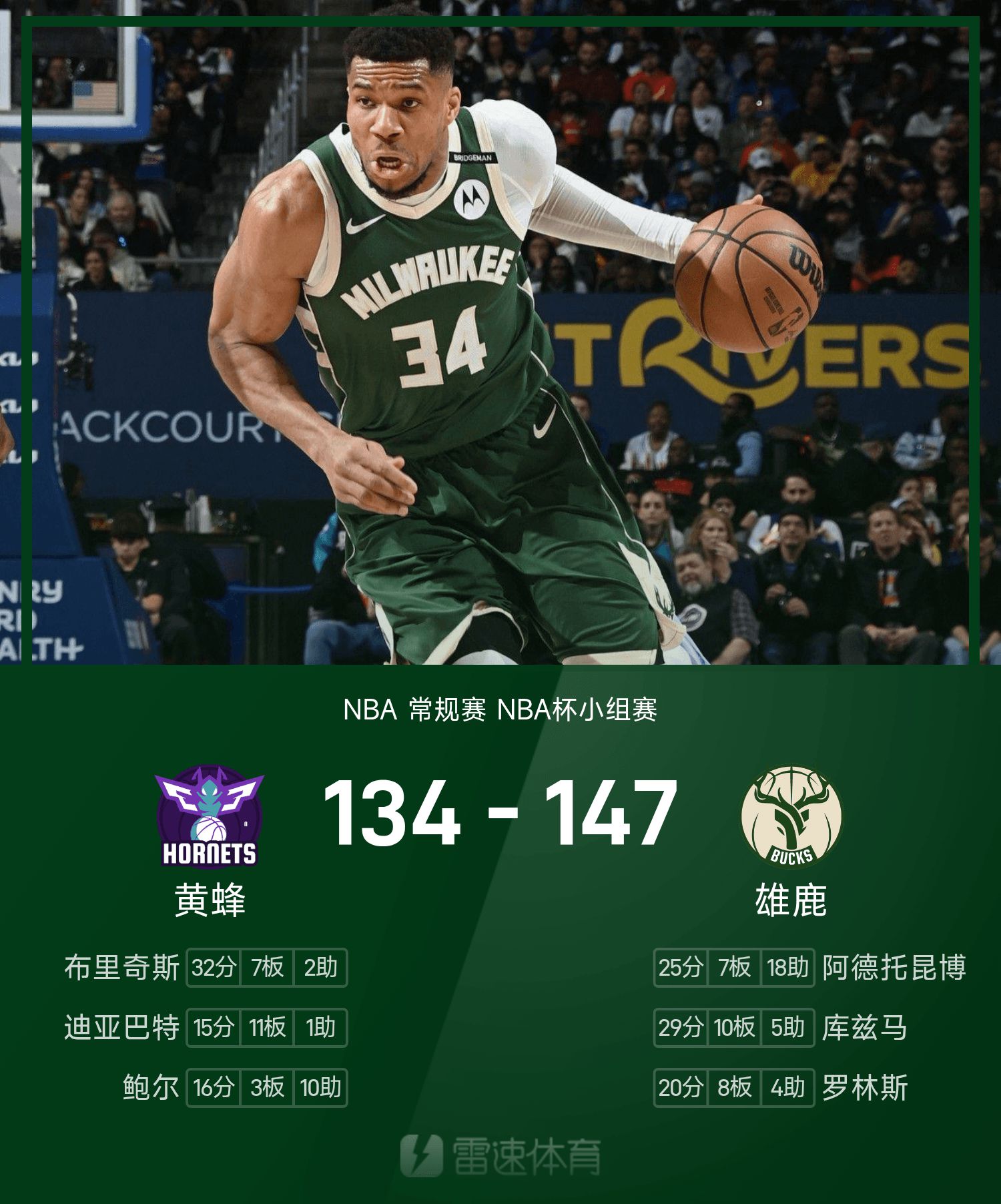 NBA戰報:庫茲馬29分10板,公鹿147-134延長賽擊敗黃蜂