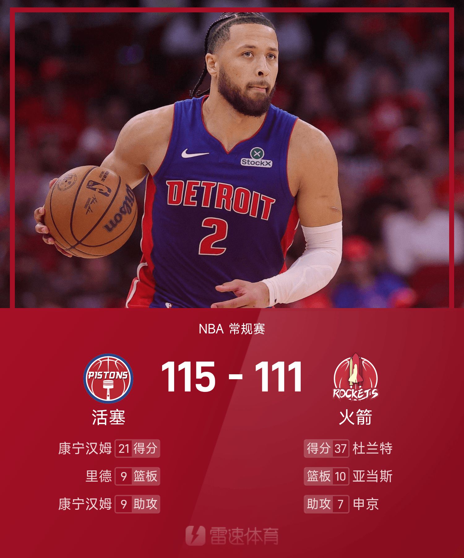 NBA戰報:康寧漢姆21分7板9助,活塞115-111火箭